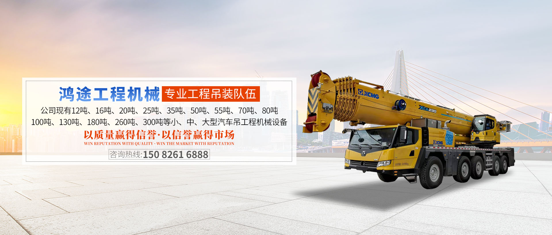 宜賓鴻途工程機(jī)械有限責(zé)任公司成立于2008年5月,經(jīng)過不斷發(fā)展,已形成一支綜合實(shí)力雄厚的專業(yè)工程吊裝隊(duì)伍。公司現(xiàn)有12噸、16噸、20噸、25噸、35噸、50噸、55噸、70噸、80噸、100噸、130噸、180噸、260噸、...